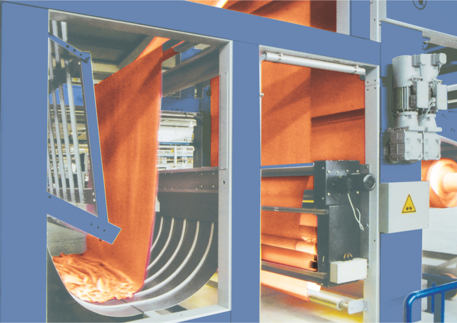 THE STENTER IS THE MOST IMPORTANT MACHINE IN TEXTILE , BECAUSE ALMOST EVERY FABRIC PASSES AT LEAST ONCE THROUGH A STENTERING MACHINE. NOT ONLY ARE THE ATTAINABLE DRYING RESULTS IMPORTANT, THE INDIVIDUAL ELEMENTS OF THE MACHINE MUST ALSO ENSURE THE QUALITY OF THE FINISHED FABRICS. IN OTHER WORDS THE INTENSITY OF ITS EXPOSITION TO AIR AND THE UNIFORMITY OF HEAT TRANSFER AND TEMPERATURE MUST BE JUST BALANCED. THE WISH LIST & NEED OF THE PRESENT TIME BY ALL FINISHERS IS, “ TO ACHIEVE VERY HIGH EVAPORATING CAPACITY WITH LOW ENERGY REQUIREMENTS.”
