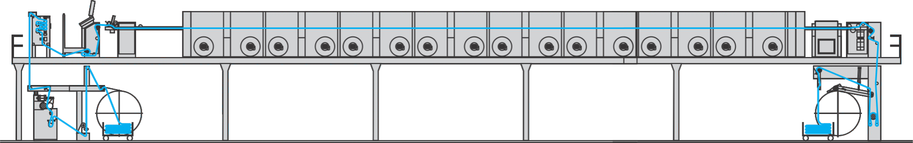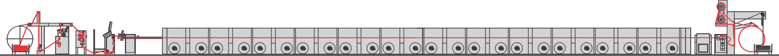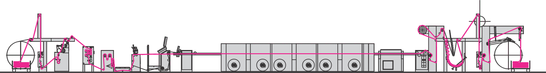 UNIVERSAL STENTER FOR DRYING AND DUAL PROCESSES, WHILE THE CORRESPONDING CONFIGURATION CAN BE USED FOR PRACTICALLY ALL TYPES OF FABRIC.